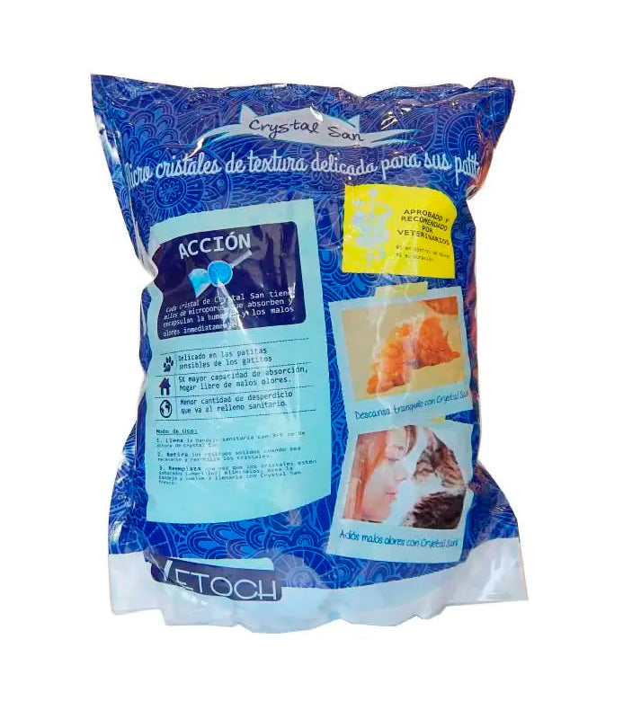 Cada cristal de Crystal San tiene miles de microporos que absorben y encapsulan la humedad y los malos olores que originan los heces y orina de tu gato inmediatamente.