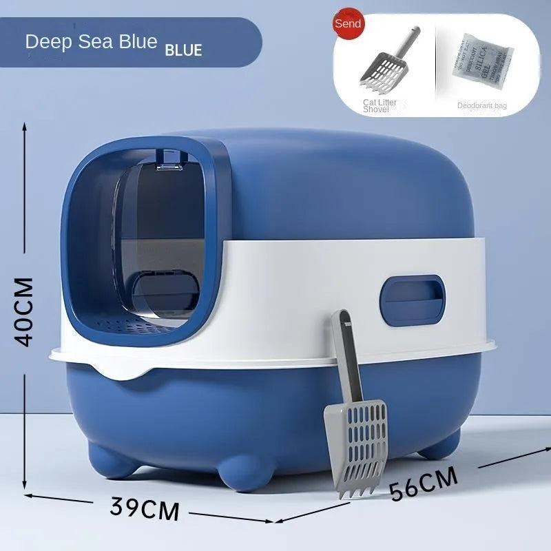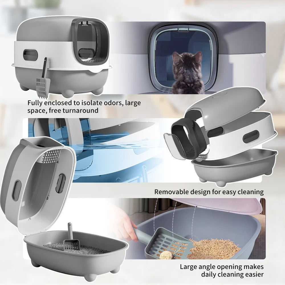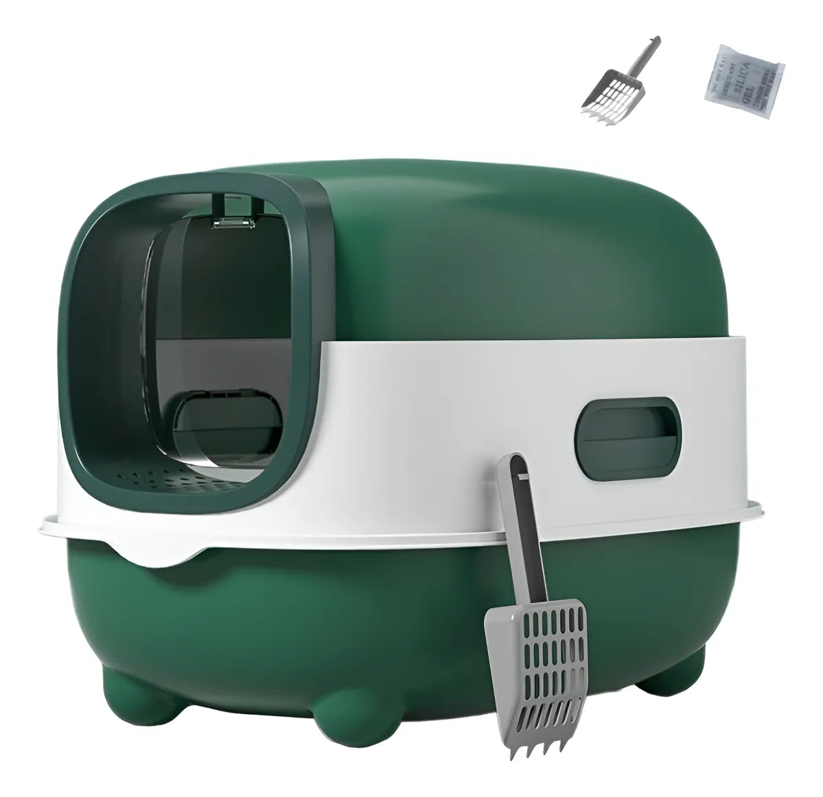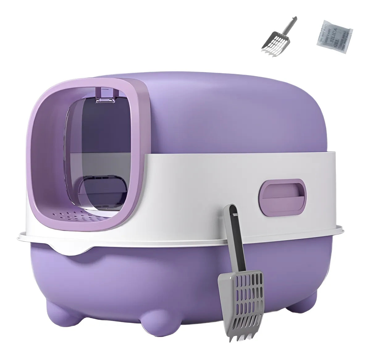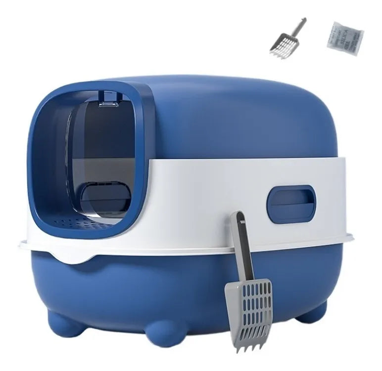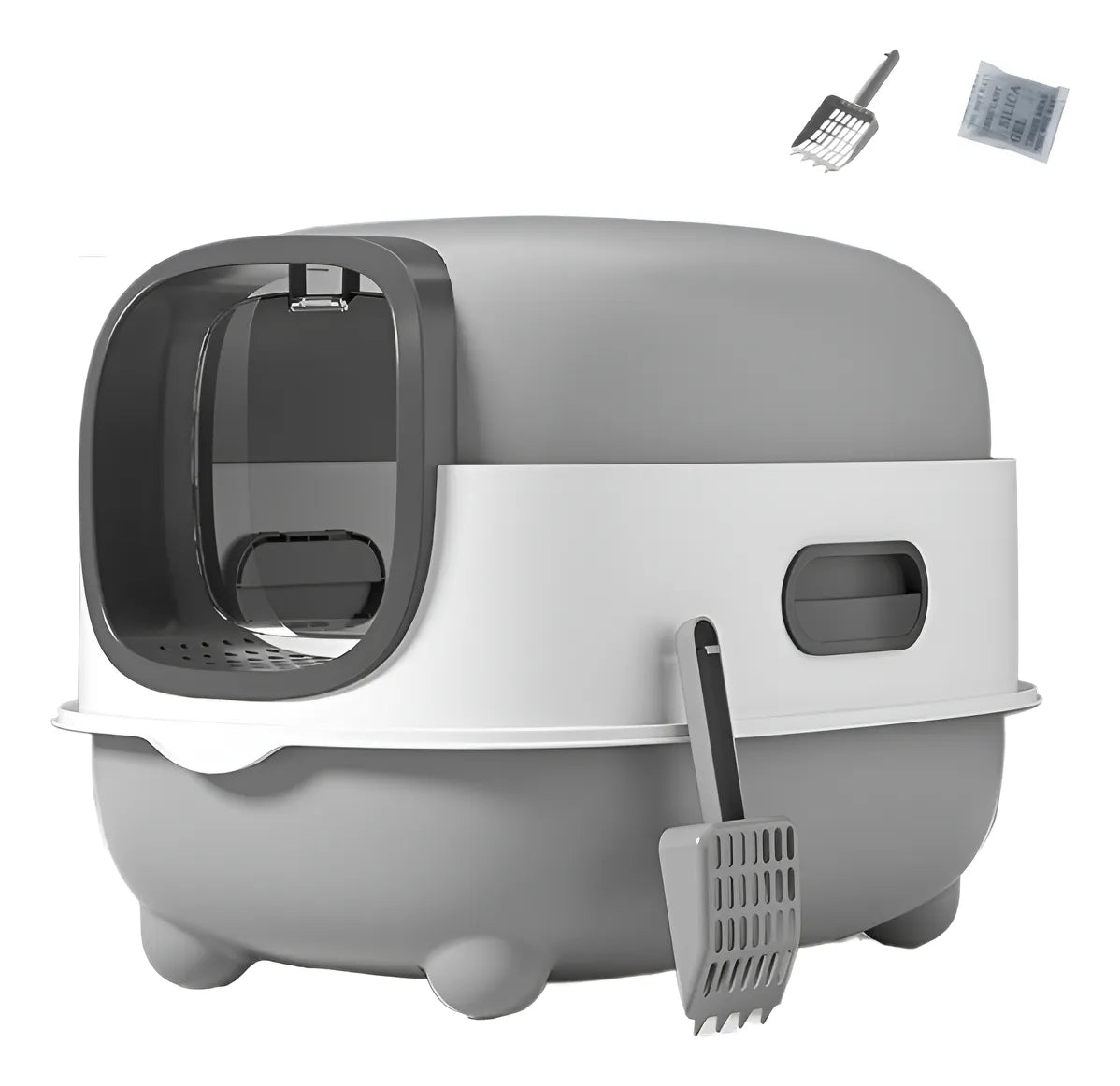 La tapa superior con cierre abatible ayuda a contener los olores y evita que la arena se esparza fuera del arenero. Perfecta para mantener el hogar limpio y libre de malos olores.